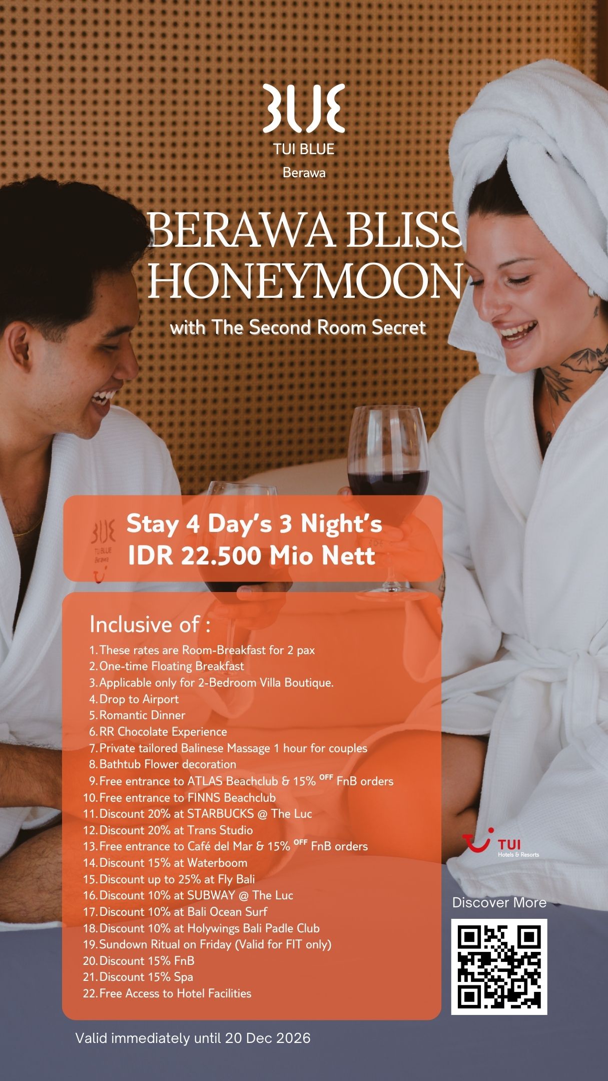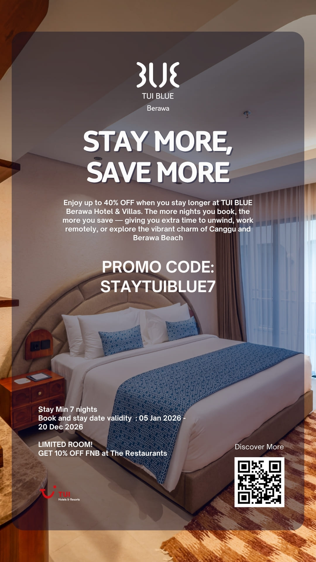 Discover exclusive offers designed to make your holiday at TUI BLUE Berawa even more special. From luxury stays complete with floating breakfast and private dinners, to special discounts at the renowned spa and beach club—each offer gives you the chance to enjoy tropical luxury at the best value.